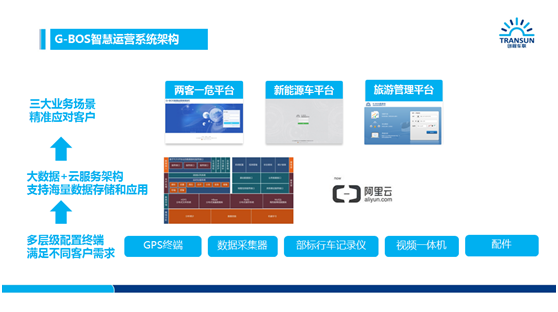 2010年第一代G-BOS智慧運營系統(tǒng)誕生,如今已發(fā)展至G-BOS三代。G-BOS三代智慧運營系統(tǒng)的功能更加全面,更加懂得用戶所需,新增六大精細應用:司機行為全景分析、智能視頻查看、油耗精準管理、智能遠程鎖車、班車及校車刷卡、智能車載WiFi,并且三代基于云平臺部署,其功能有計算服務:提供高性能、安全穩(wěn)定的彈性計算服務;存儲服務:多級數據存儲解決方案,保障數據存儲安全無憂;網絡服務:提供跨運營商、跨地域全網覆蓋的高可用網絡服務;安全服務:有效防御網絡攻擊,幫助客戶降低安全風險,為客戶的數據保駕護航。目前,G-BOS智慧運營系統(tǒng)在全國的裝車量已經超過13萬輛,服務客戶超過2000家。
