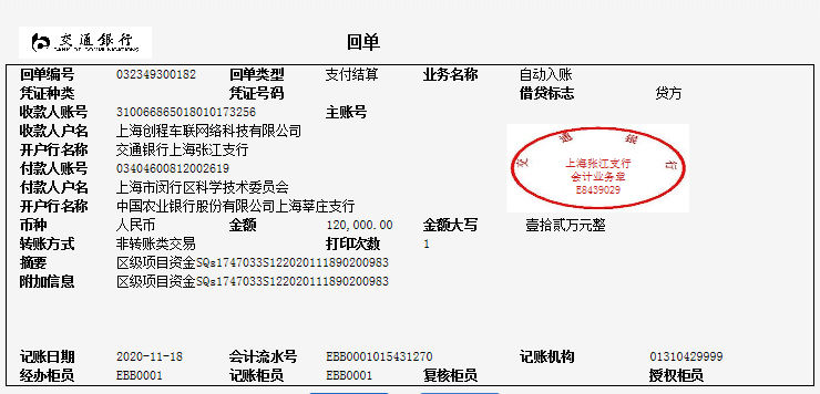 2020年930日,閔行區(qū)科委組織有關(guān)專家,對我司承擔(dān)的“基于核心技術(shù)創(chuàng)新的高級輔助駕駛系統(tǒng)”項目(編號:2018MH009)進行了驗收,經(jīng)過專家組討論,我司該項目資料齊全,專項資金使用合理,完成了計劃任務(wù)書設(shè)定的績效指標(biāo),同意項目通過驗收。11月份,我司已收到項目尾款十二萬元整。