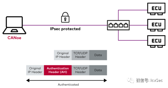 通過這種方式,您可以實(shí)現(xiàn)經(jīng)典的保護(hù)目標(biāo),如機(jī)密性、真實(shí)性和完整性。通過對IP層的保護(hù),實(shí)現(xiàn)了以上各層的保護(hù)目標(biāo)。IPsec協(xié)議的使用實(shí)現(xiàn)了對一些/IP、DoIP、TLS和HTTP等較高層協(xié)議的透明保護(hù)。Security Manager提供了一個包含IPsec協(xié)議中最重要元素的IPsec堆棧: