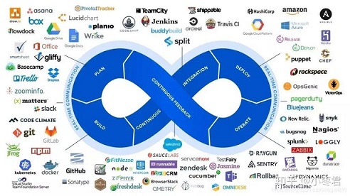 無(wú)論是縱向集成還是橫向集成,DevOps都需要通過(guò)工具鏈與持續(xù)集成、交付、反饋與優(yōu)化進(jìn)行端到端整合。如華為的軟件開(kāi)發(fā)云服務(wù), 基于二十幾年的研發(fā)實(shí)踐,融合DevOps理念方法,為企業(yè)提供一站式的云上開(kāi)發(fā)工具平臺(tái)。華為軟件開(kāi)發(fā)云提供項(xiàng)目管理、配置管理、代碼檢查、編譯構(gòu)建、測(cè)試、部署、發(fā)布等端到端地覆蓋全軟件生命周期的相關(guān)服務(wù)。類似的DevOps 工具數(shù)不勝數(shù),常見(jiàn)的DevOps 生態(tài)圈工具如圖 5。