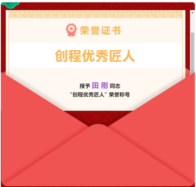 2023年第二季度評(píng)優(yōu) —— 創(chuàng)程優(yōu)秀匠人【田剛】