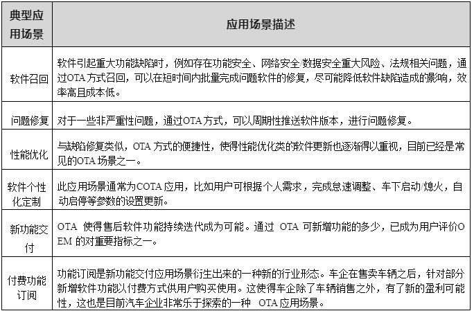 從軟件運(yùn)營(yíng)管理的維度 OTA 的典型應(yīng)用場(chǎng)景如下表 2-2 所示。